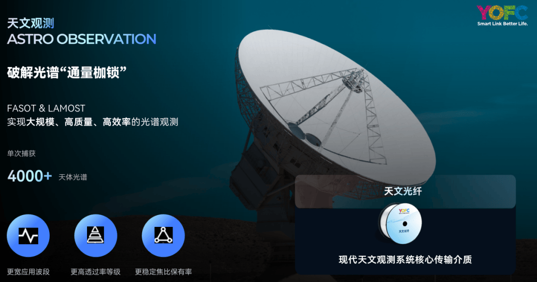 天:长飞的天文特种宽谱光纤可实现大规模、高质量、高效率的光谱观测,可单次捕获4000+天体光谱。