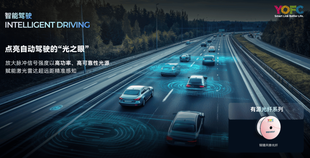 地:长飞旗下的的铒镱共掺光纤正在点亮自动驾驶的“光之眼”,放大脉冲信号强度以高功率、高可靠性光源赋能激光雷达超远距精准感知,是新能源汽车和智能驾驶的重要技术保障。