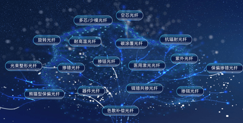 此后通过持续不断地研发与迭代,长飞特种光纤从早期只拥有色散补偿光纤的这颗“小苗”已经成长为拥有色散补偿光纤、熊猫型保偏光纤、器件光纤、铒镱共掺光纤、掺铒光纤、光束整形光纤、掺镱光纤、医用激光光纤、紫外光纤等近五十类特种光纤产品线的参天“大树”,产品应用场景覆盖“空-天-地-海”多个维度。