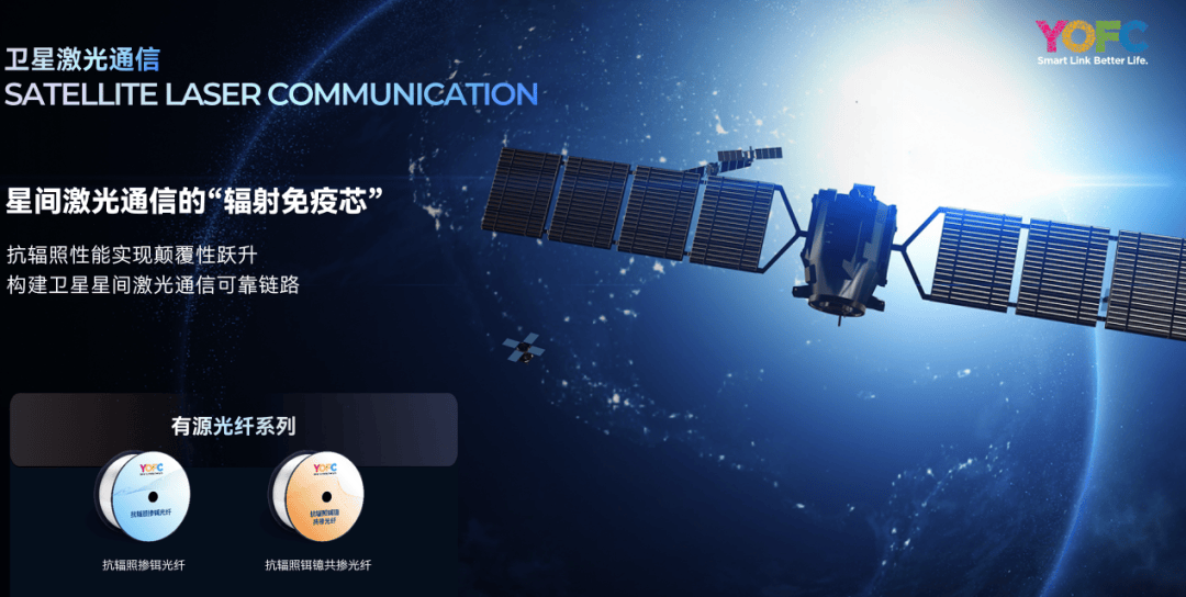 空:长飞公司研发的抗辐射增益光纤,具有超强抗辐照性能、高一致性、高转换效率,可保障信号放大持续稳定,即便在太空环境下也能保持良好的性能,可广泛应用于空间激光通信领域。